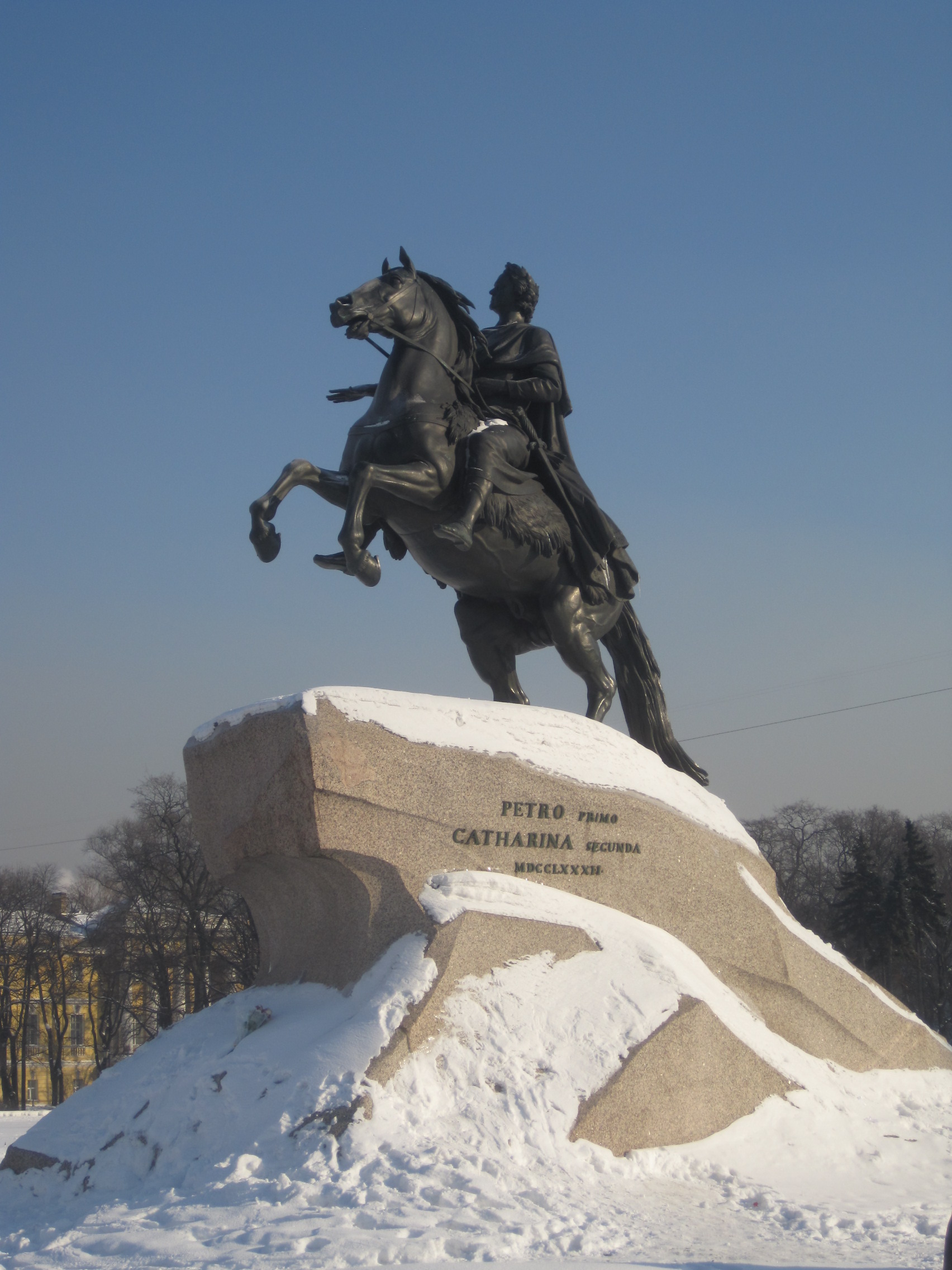 The Bronze Horseman in the snow