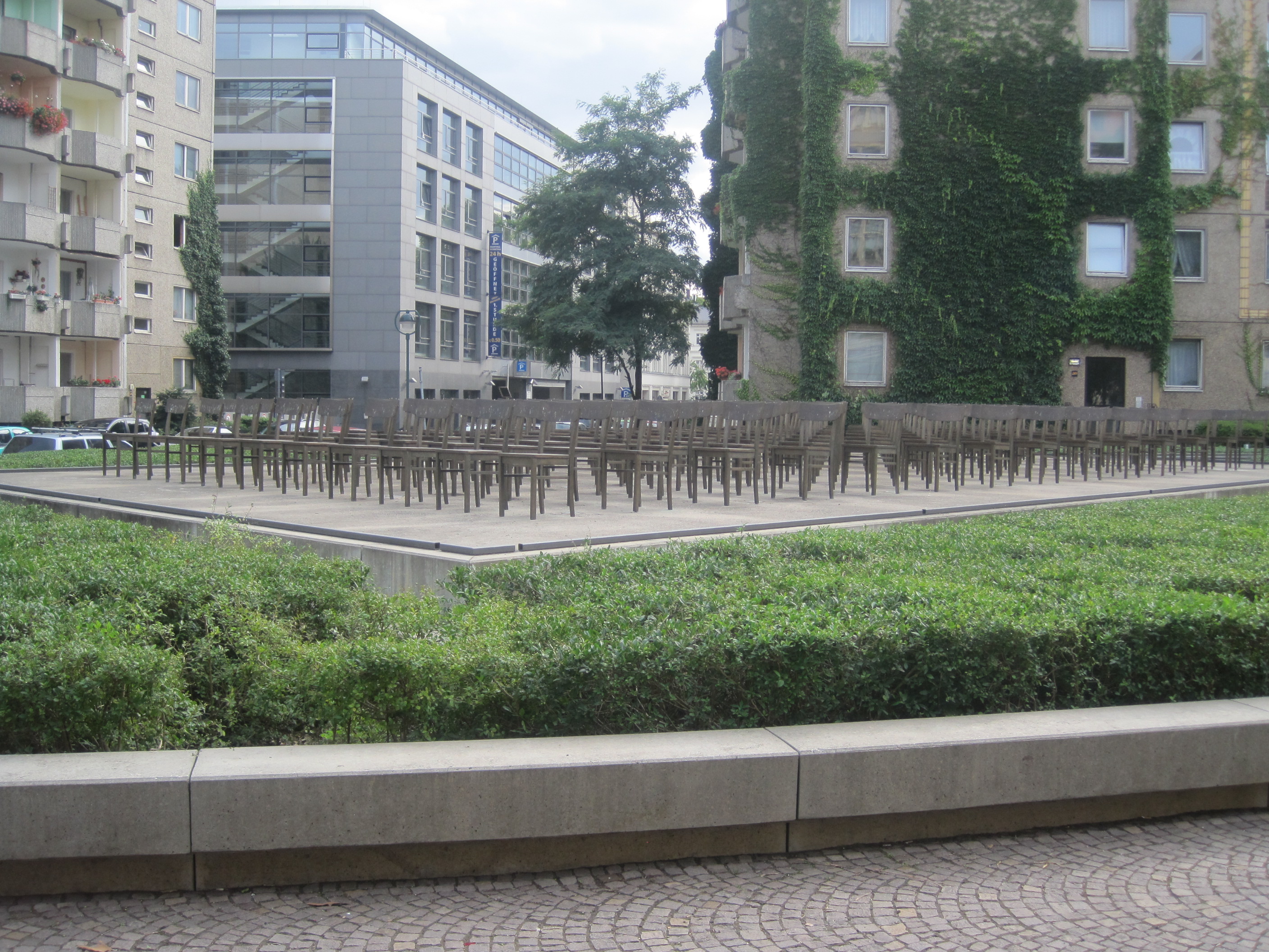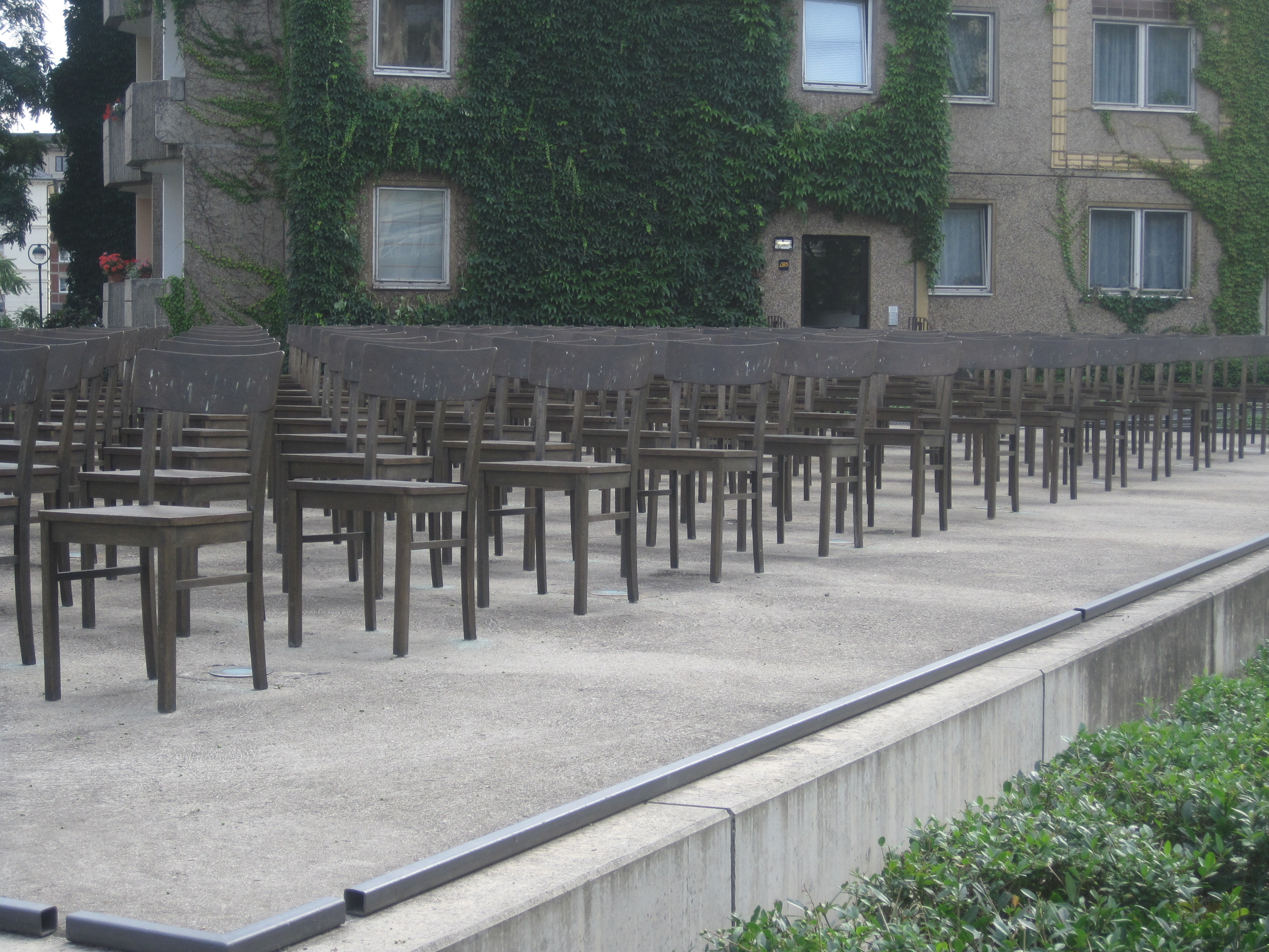 The synagogue was burned down by fascists on Kristallnacht – ‘the night of broken glass’ – in 1938 and now 140 empty bronze chairs stand in its place. The monument is quite minimalist with just a short description in German, English, Russian and Hebrew, but I think the effect is really striking.