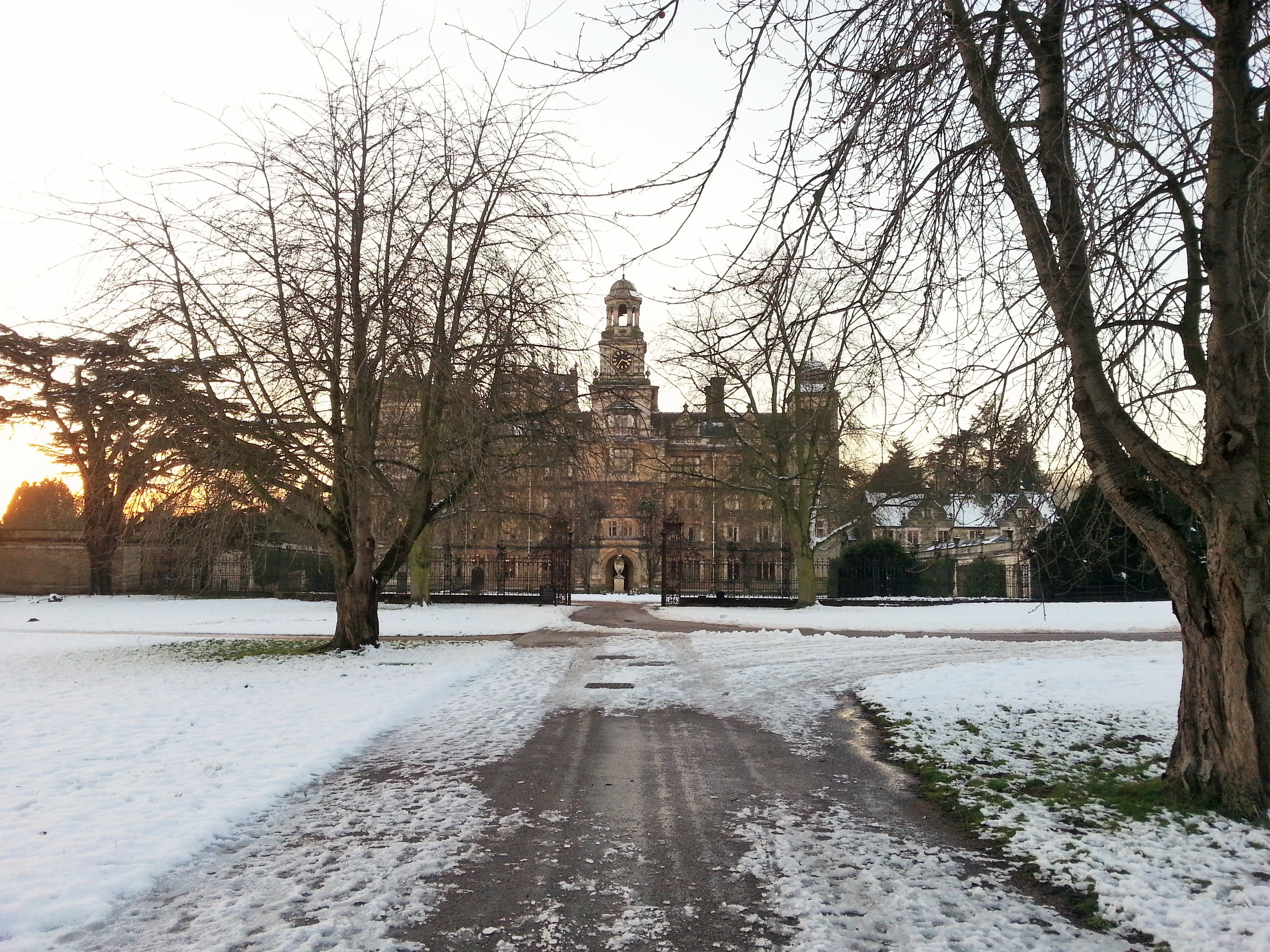 And so despite taking a self-imposed break from the blog over the festive season, I couldn’t help but share these photos of the nearby Thoresby Hall in all its snowy wonder.